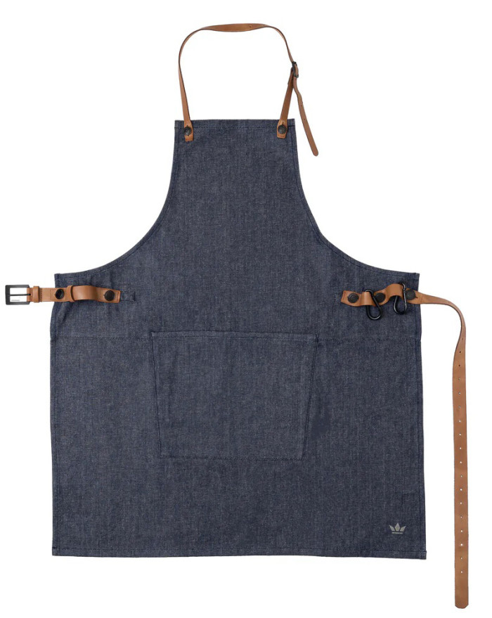 Dutchdeluxes proprose des tabliers aussi tendance qu'un jean. Le tablier en denim style barbecue est doté de belles bretelles en cuitr réglables, d'une poche kangourou et de mousquetons pour ustensiles de barbecues et serviettes. Chaque tablier Dutchdeluxes, en toile ou en denim, possède un délavage unique